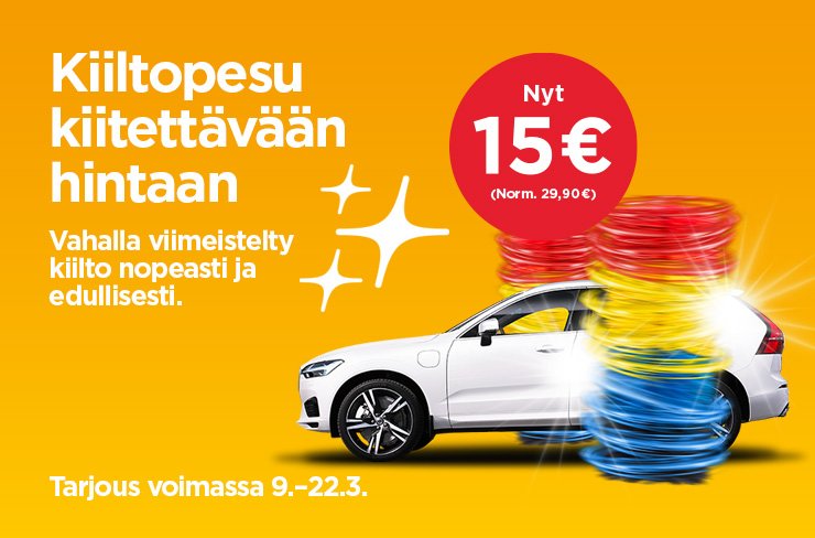 Tarjous on voimassa vain 9.-22.3. mutta pesukoodit ovat voimassa 5 kuukautta kaikilla St1 Autopesuasemilla, joten voit pestä autosi juuri silloin, kun se sitä eniten tarvitsee.