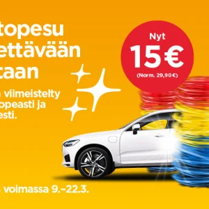 Anna kuralle ja loskalle kyytiä talven Super-pesuilla. Saat nyt kaksi Super-pesua hintaan 45 € Talvipesupaketillamme.
